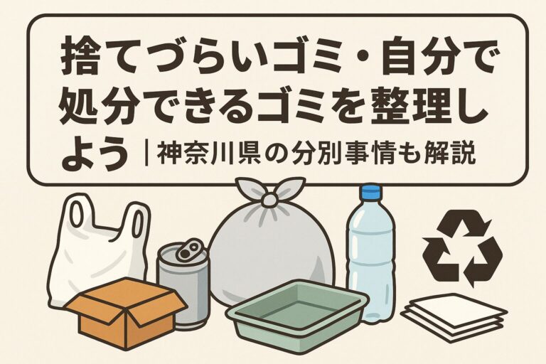 遺品整理や生前整理を進めるとき、「これは自分で捨てられるの?」「業者じゃないと無理?」という疑問がよく生まれます。特に神奈川県は自治体ごとにルールに違いがあるため、迷う場面も多めです。本記事では、一般的な家庭で悩みがちなゴミと、自分で捨てられるもの・業者に任せたほうがいいものをまとめ、さらに神奈川県内の分別ルールのポイントも整理しました。